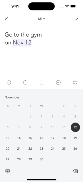 Doo uses a set of custom keyboards to keep controls within reach. Create one-off tasks or future appointments with ease. No interruption. No fuss.