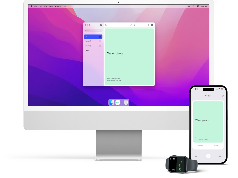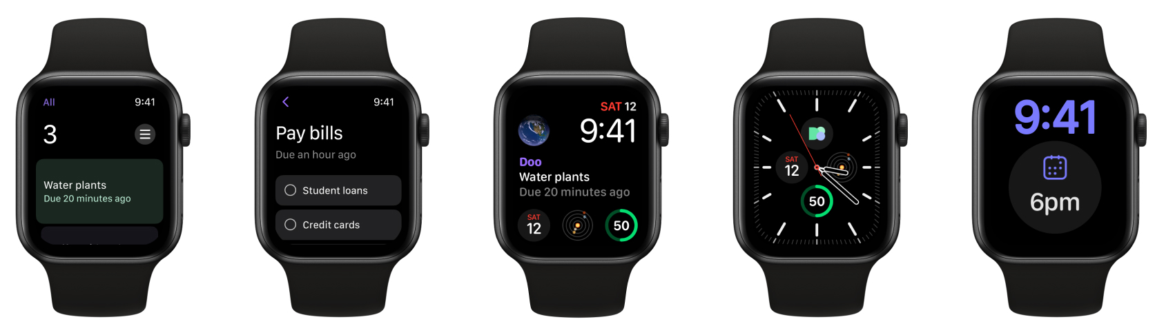 Manage tasks from the Apple Watch app or review from your watch face. Two complication options highlight what’s upcoming or your last due item.