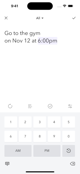 Doo uses a set of custom keyboards to keep controls within reach. Create one-off tasks or future appointments with ease. No interruption. No fuss.